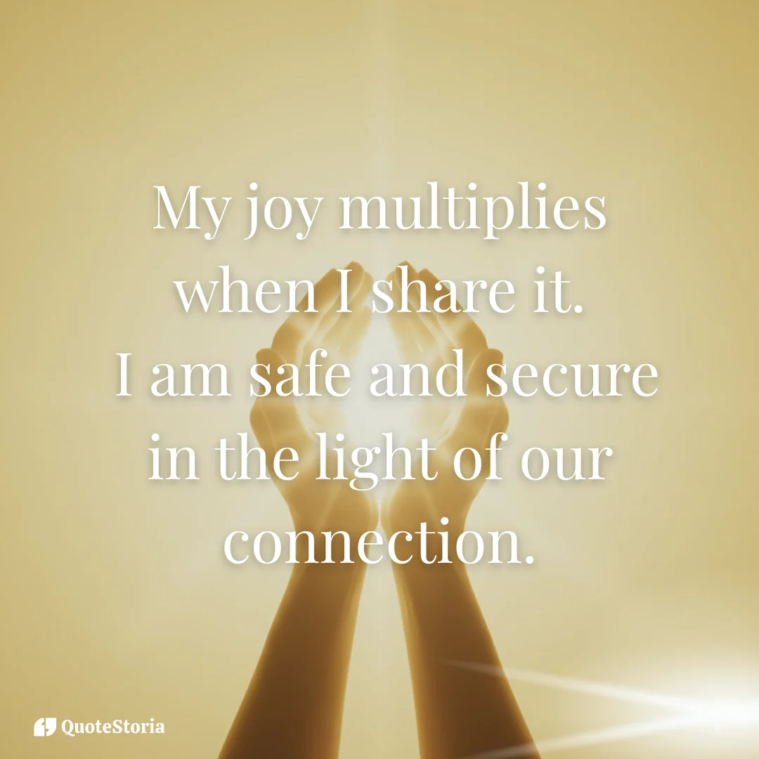 Affirmation: My joy multiplies when I share it. I am safe and secure in the light of our connection.