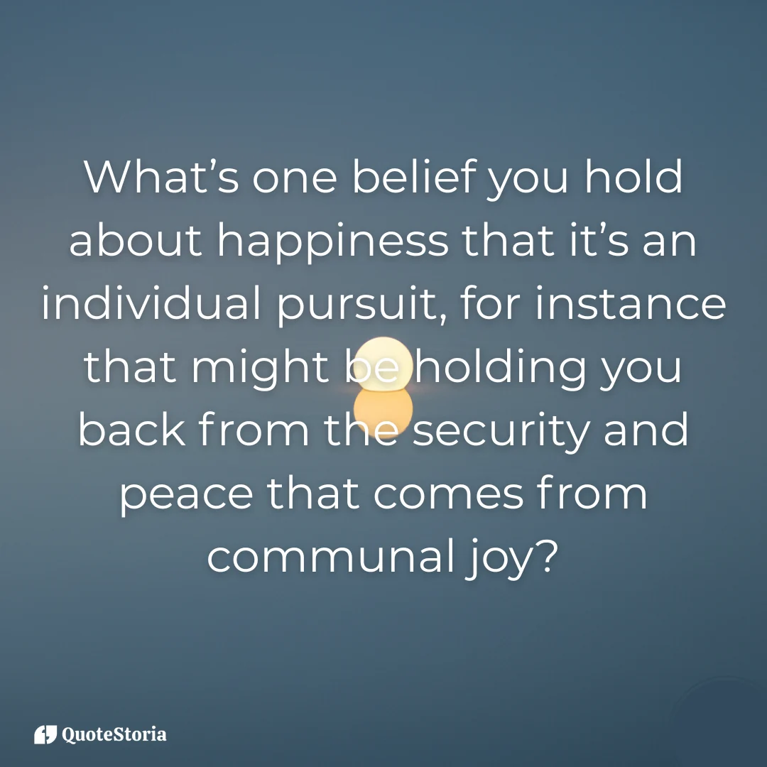 What’s one belief you hold about happiness—that it’s an individual pursuit, for instance—that might be holding you back from the security and peace that comes from communal joy?