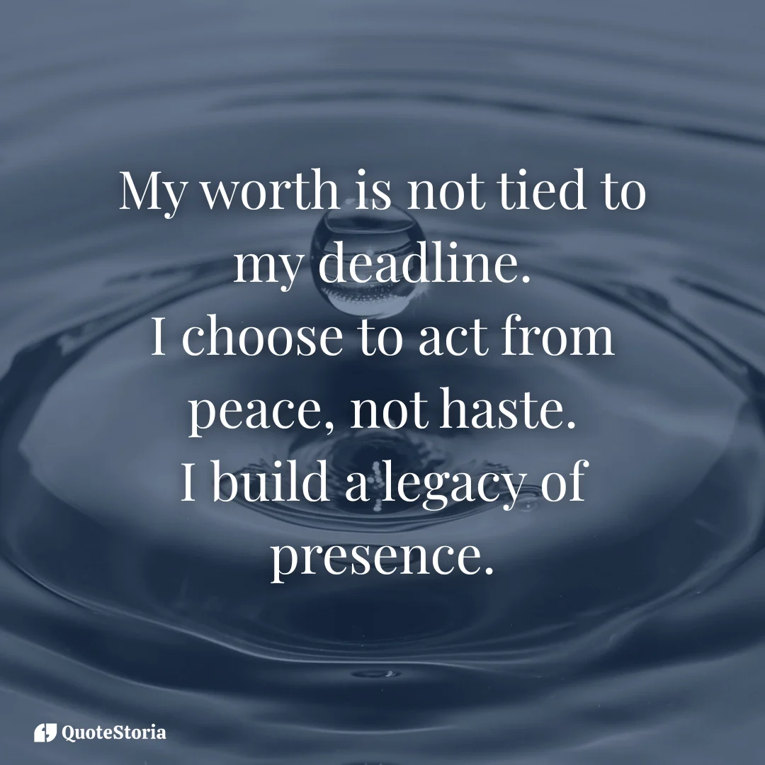 My worth is not tied to my deadline. I choose to act from peace, not haste. I build a legacy of presence.