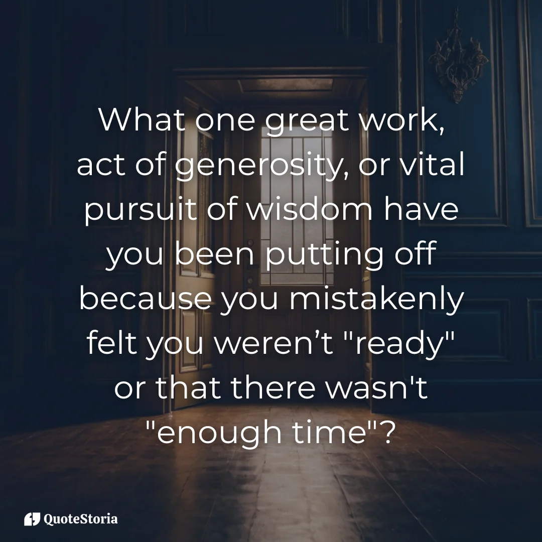 What one great work, act of generosity, or vital pursuit of wisdom have you been putting off because you mistakenly felt you weren’t “ready” or that there wasn’t “enough time”?