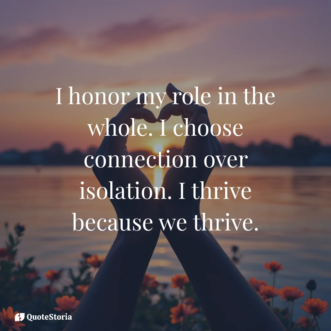 I honor my role in the whole. I choose connection over isolation. I thrive because we thrive.